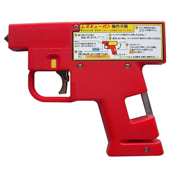自動車用窓ガラス割り具「レスキューガン」(ウインドウクラッシャー 車載用 脱出 緊急 救助 シートベルトカッター 安全スイッチ)